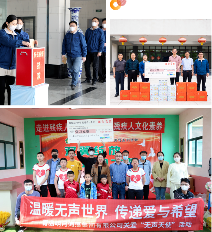 大力開展慈善捐助及社會公益活動,展現明月海藻集團良好的民企形象。疫情期間,組織廣大黨員、員工通過區紅十字會踴躍為湖北武漢捐款;積極關心殘疾兒童,每年在助殘日組織團員青年到區聾兒語訓中心進行慰問捐贈活動;積極支持教育事業,并利用海藻世界景區開展海洋科普研學活動。