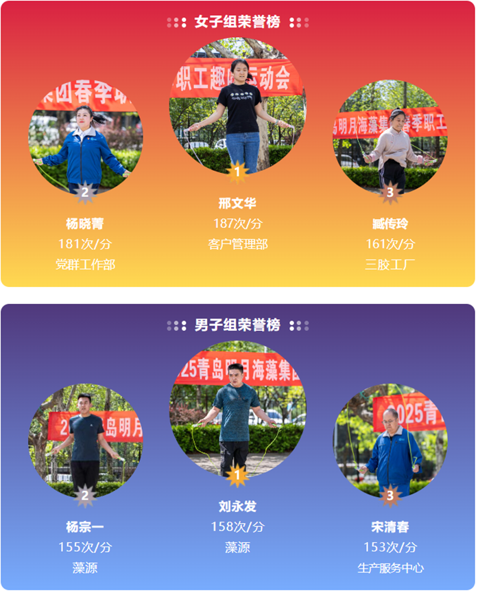 緊隨拔河比賽之后的是跳繩速度賽,男子組、女子組選手在1分鐘內展開激烈角逐。賽場上,選手們身姿矯健,跳繩翻飛如蝶,現場歡呼不斷。最終,男子組以158次/分鐘的成績問鼎冠軍,女子組則以187次/分鐘的優異成績拔得頭籌。
