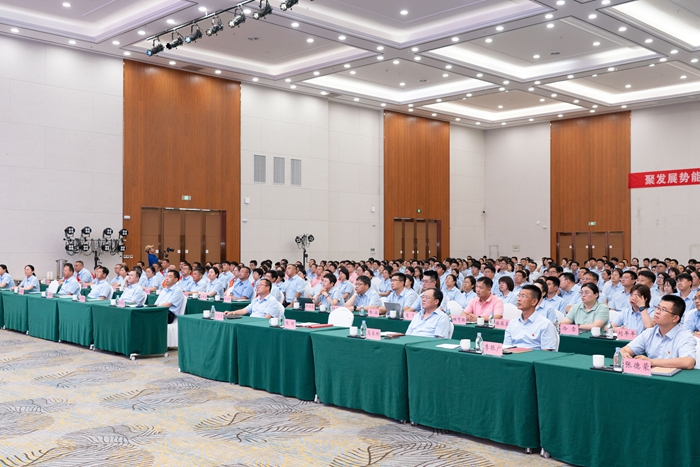 會議開場播放了主題視頻《向前一步》,一幀幀奮斗畫面、一項項突破數據、一幕幕創(chuàng)新場景,全景式展現了集團有效應對復雜多變的經濟形勢所邁出的堅實步伐和取得的顯著成效。