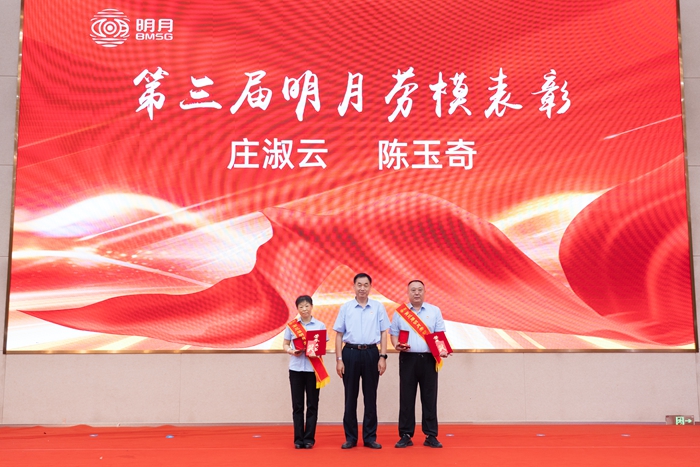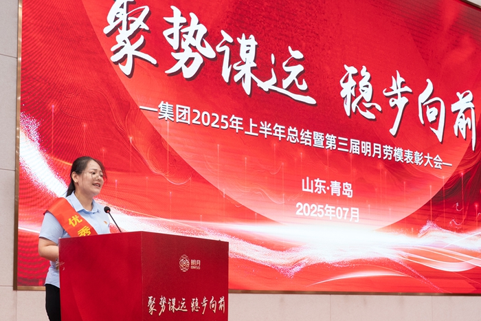 集團工會主席楊曉菁宣讀《中共青島明月海藻集團有限公司委員會、青島明月海藻集團有限公司工會委員會關于表彰第三屆明月勞動模范的決定》。勞模主題視頻《平凡之路,匠心筑夢》、《堅守如磐,微光成炬》生動展現了莊淑云、陳玉奇兩位第三屆明月勞模數十年如一日的默默堅守,以點滴微光匯聚創(chuàng)新力量,在平凡崗位上追求極致的“工匠精神”。陳玉奇代表勞模發(fā)言,表達了將繼續(xù)扎根崗位、銳意創(chuàng)新、甘于奉獻,為集團“聚勢謀遠”貢獻全部力量的堅定決心。