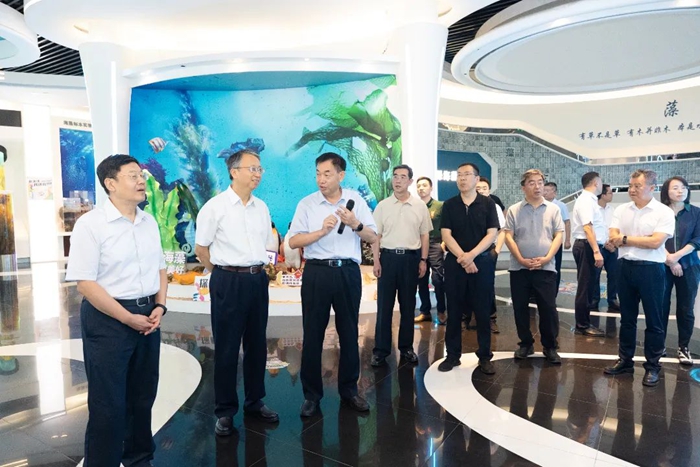 日前,全國人大常委會法工委主任沈春耀率調研組蒞臨青島明月海藻集團,專題調研基層立法聯系單位建設運行情況。集團黨委書記、董事長張國防陪同接待。調研組一行深入海藻科技館,實地考察了明月在海洋生物科技領域的前沿成果與新質生產力發展實踐,并重點了解了集團作為基層立法聯系單位,在匯聚行業民意、參與國家科學民主立法方面的工作成效。