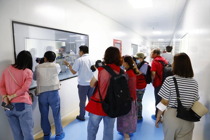 17日上午,侯主席一行走進明月海藻集團,并深入各大產業板塊進行采風,干凈整潔的生產車間、井然有序的生產線、熟練操作的生產工人,大家競相用手中的相機記錄下明月人踔厲奮發開創美好生活的精神面貌。